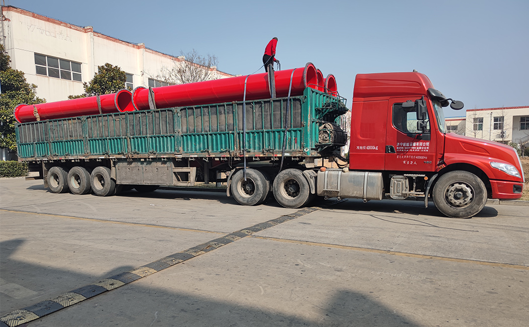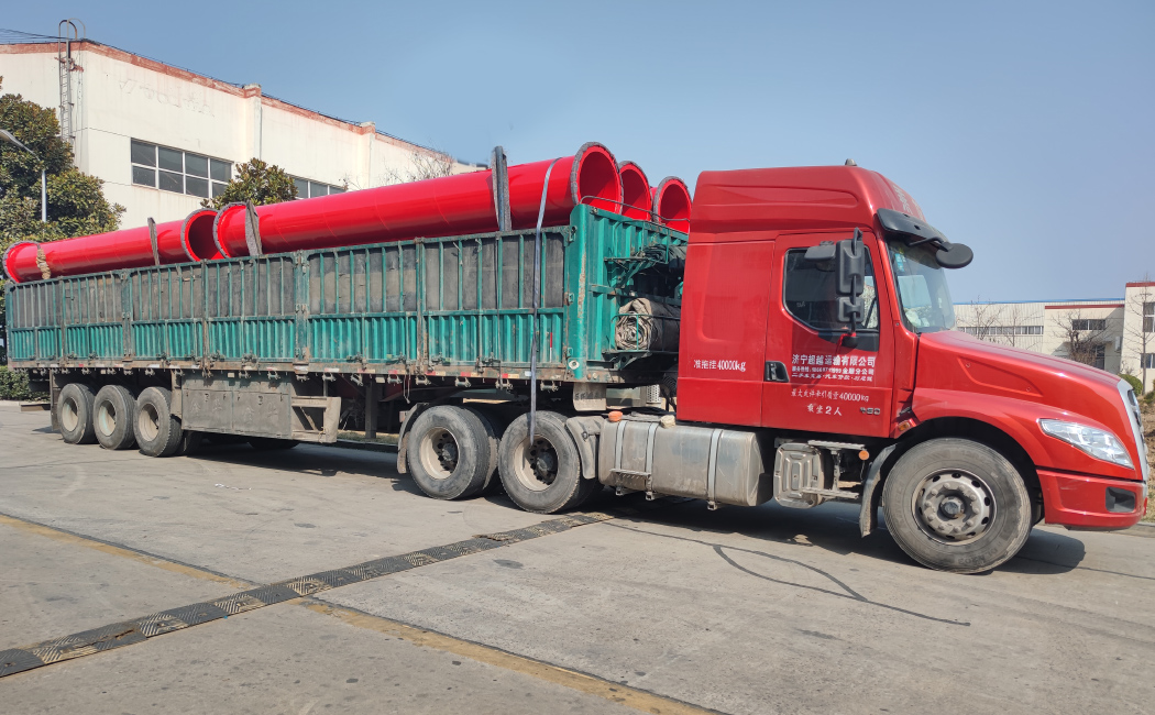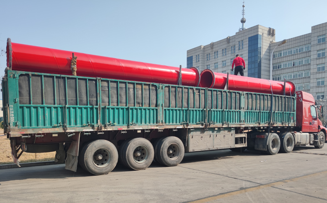 3月7日,國能實業生產的8000米礦用管道陸續裝車發往內蒙古某大型煤礦
